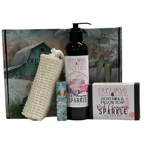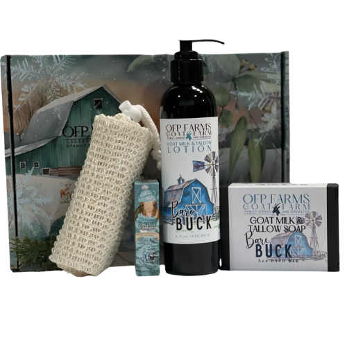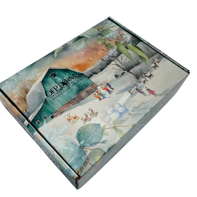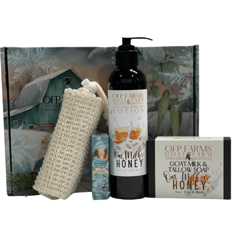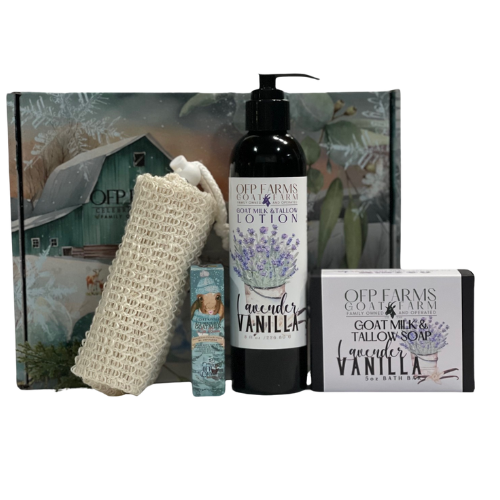 This charming gift set includes all the bath essentials, making it a fantastic present for any celebration! Everything comes tucked inside a lovely OFP Farms box, accompanied by an adorable farm-themed card and a discount code for your next purchase.