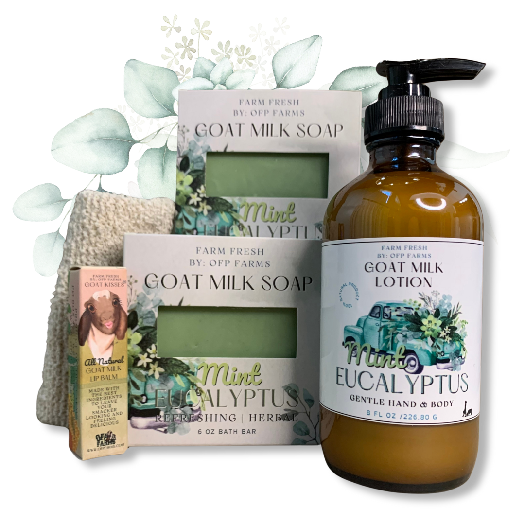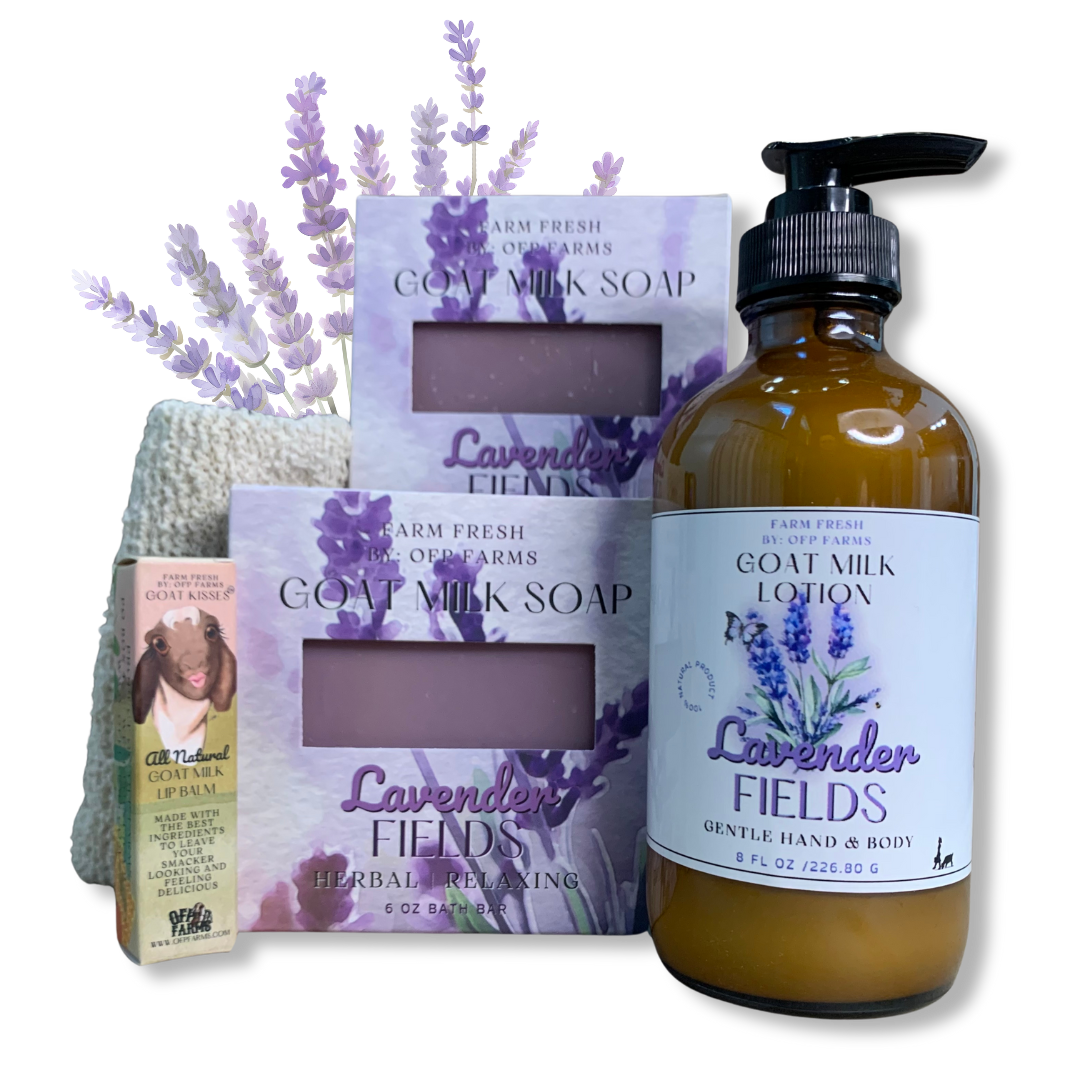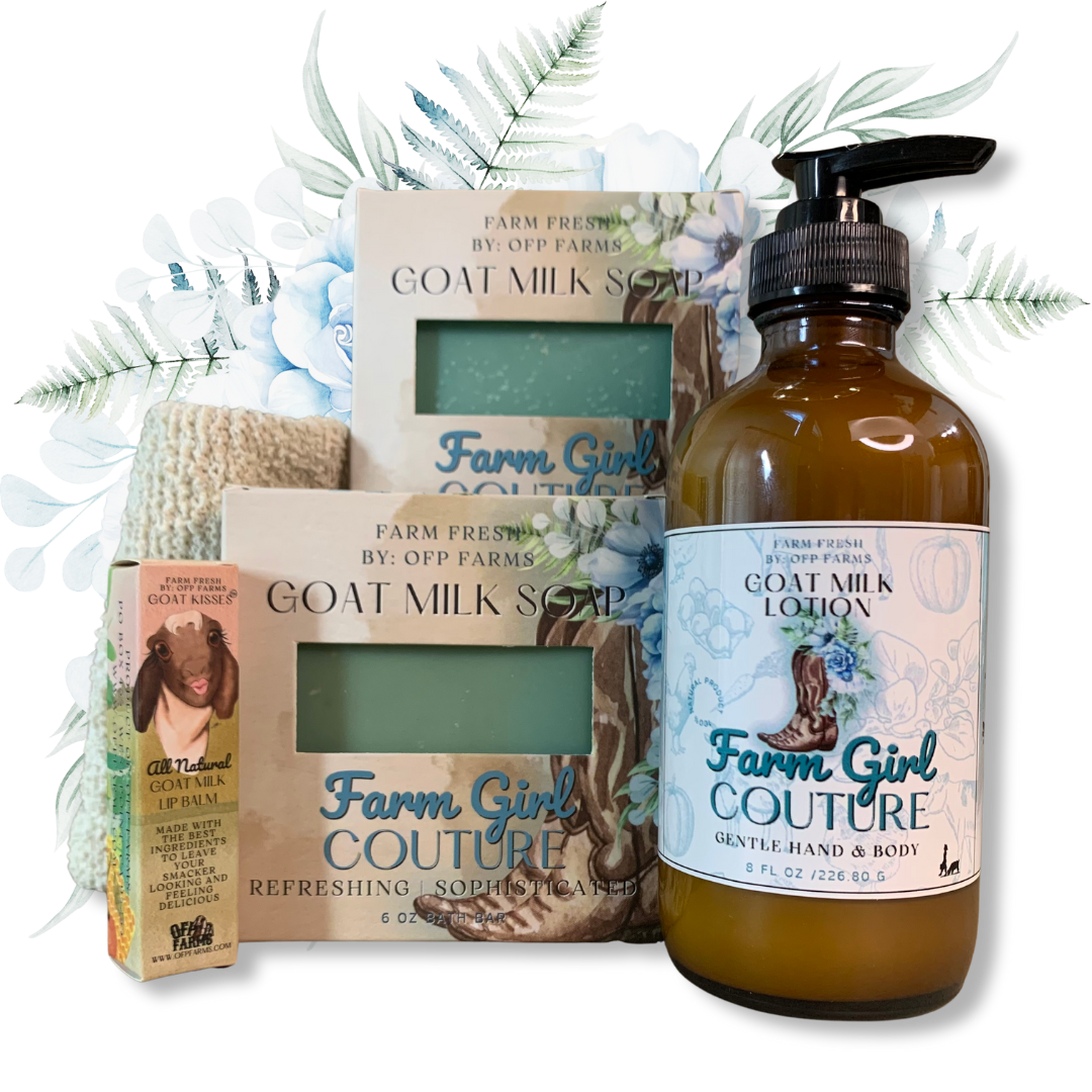 TEMPORARILY SOLD OUT! Farm Basics - Boxed Set -SPRING | 2 Goat Milk and Tallow Soaps, 1 Full Size Lotion, 1 Lip Balm, 1 Soap Sack