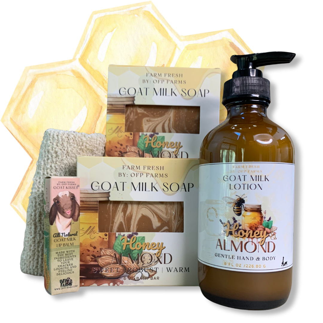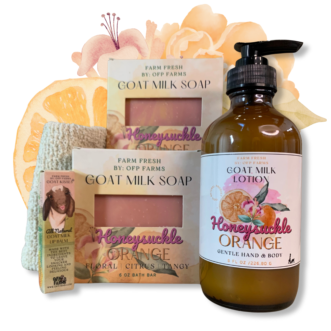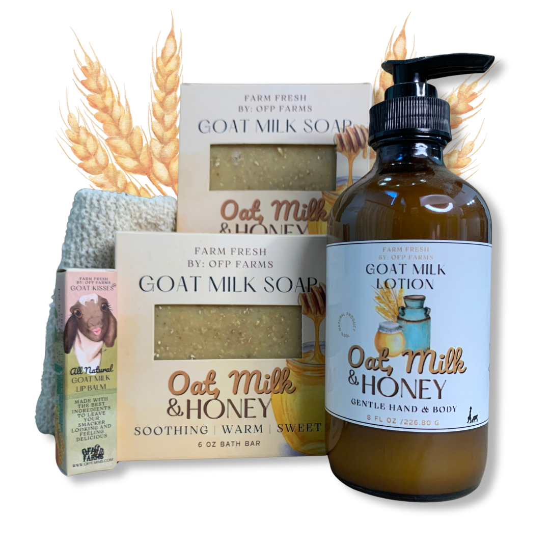 TEMPORARILY SOLD OUT! Farm Basics - Boxed Set -SPRING | 2 Goat Milk and Tallow Soaps, 1 Full Size Lotion, 1 Lip Balm, 1 Soap Sack