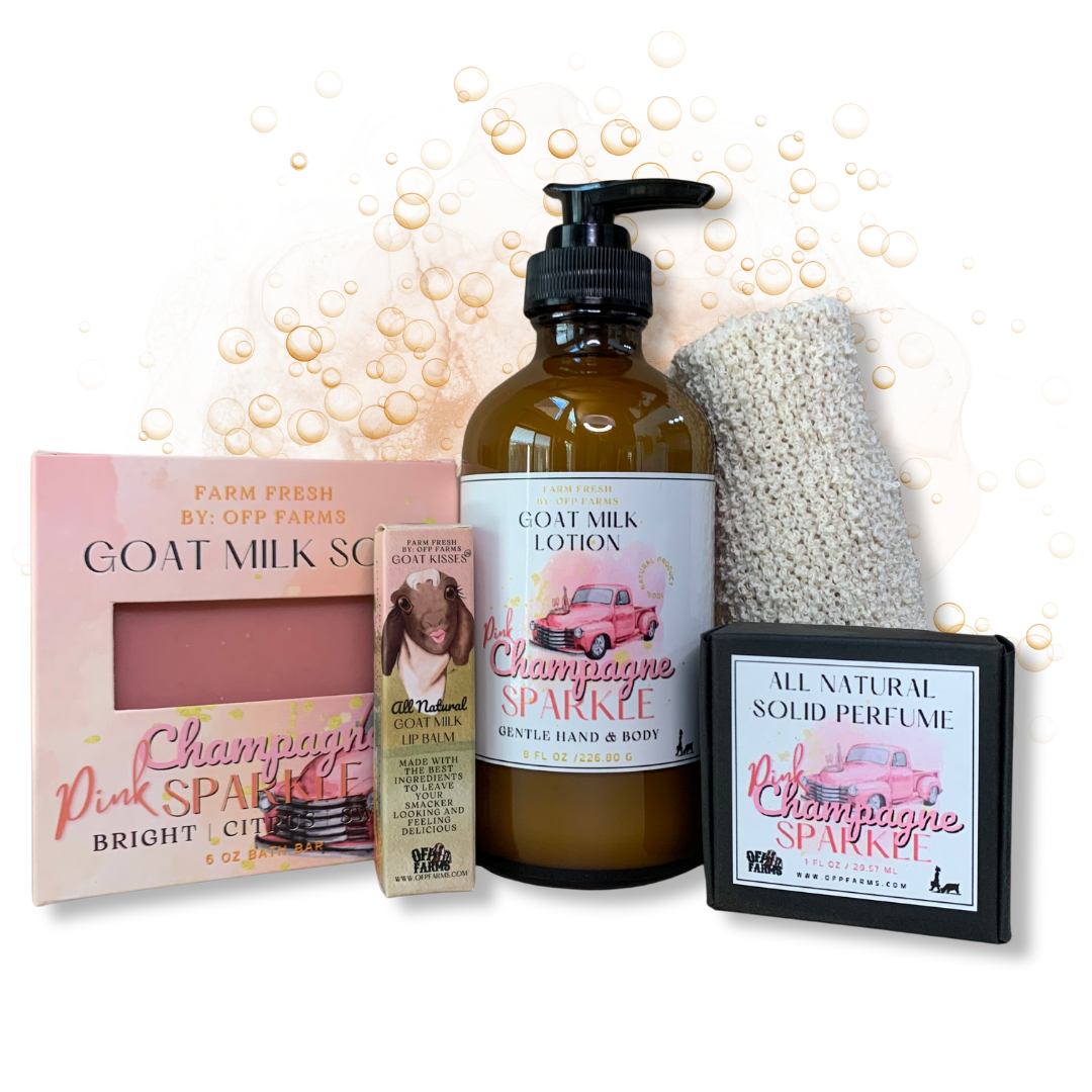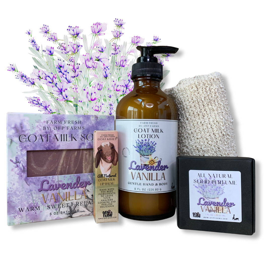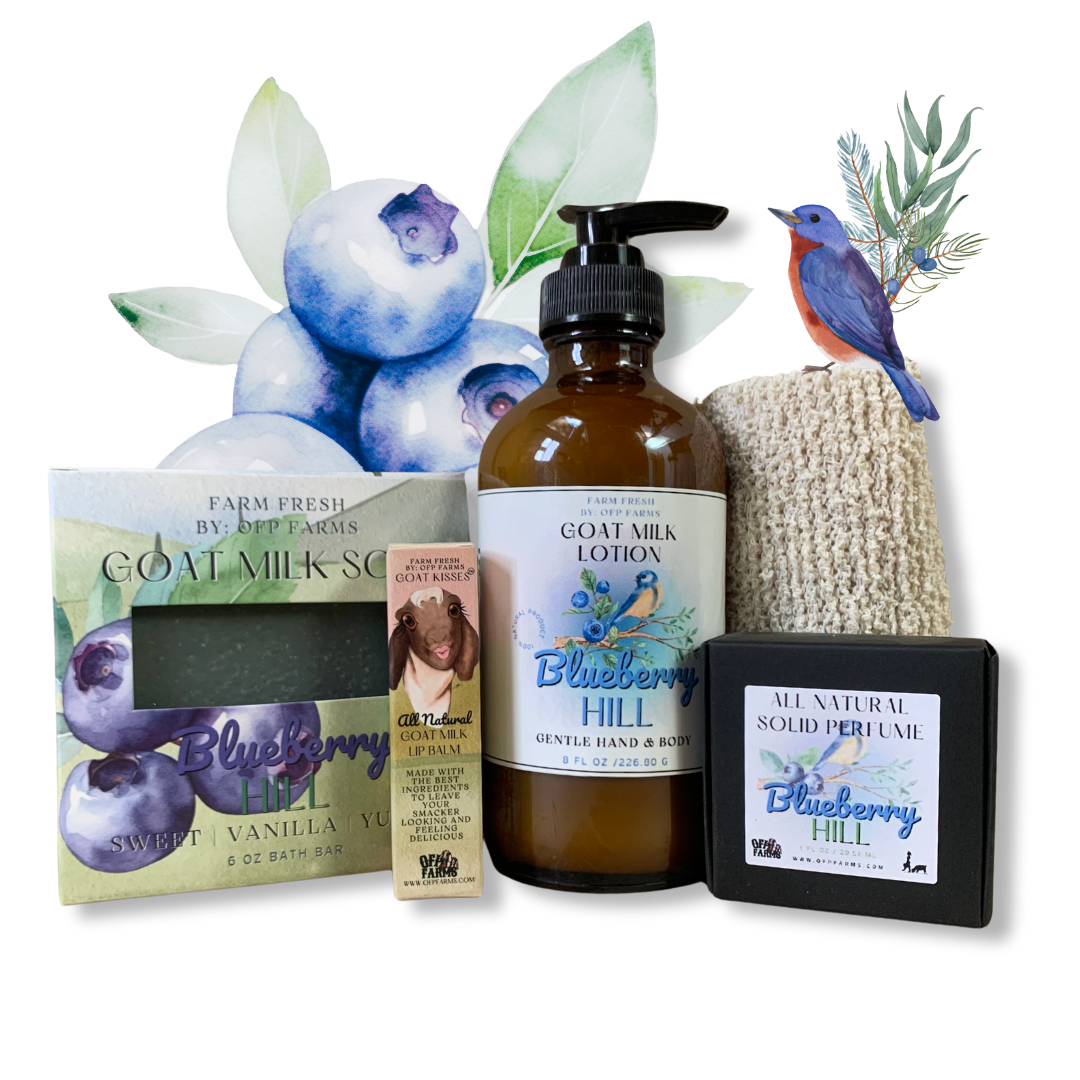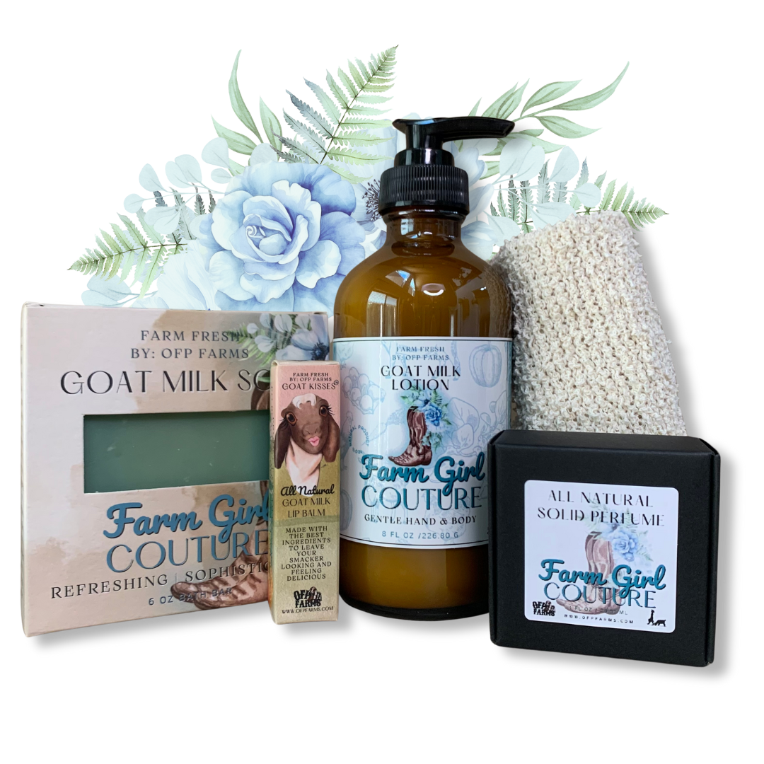 TEMPORARILY SOLD OUT! Farm Box Gift Set - Spring | 1 Goat Milk Tallow Soap | 1 Full Size Lotion | 1 Solid Perfume | 1 Lip Balm | 1 Soap Sack